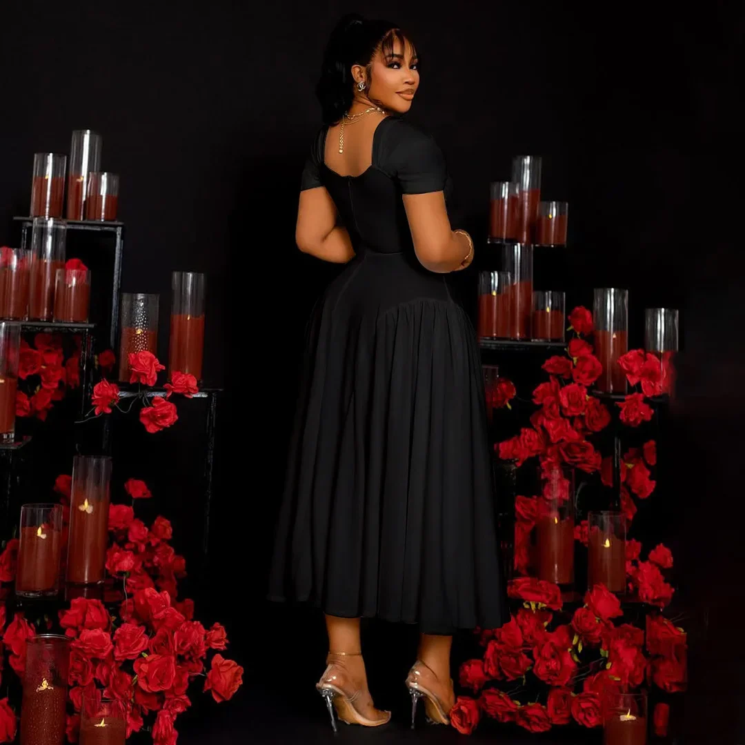 • Black Color : The classic black color of this dress ensures versatility, allowing you to pair it with any accessories or shoes.